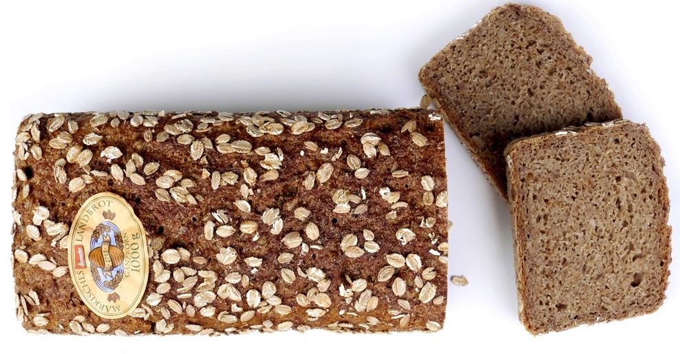 Getreideanteil bezogen auf 100 % Getreide: 65 % Roggenvollkorn, 35 % Weizenvollkorn | Zu Röstbrot werden folgende Brotsorten verarbeitet: Brodowiner, Dinkel-Roggen, Dreikorn, Ganzkorn, Kürbiskernbrot, Roggenbrot, Sonnenblumenbrot.