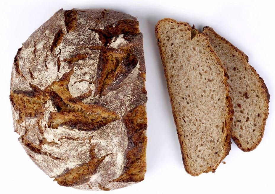 Röstbrot (Lebensmittelwasser, Roggenvollkorn, Weizenvollkorn, Dinkelvollkorn, Gerstenvollkorn, Deutsches Steinsalz, Sauerteigkulturen*, Sonnenblumenkerne*, Gerstenmalzmehl) Herkunft: eigene Herstellung