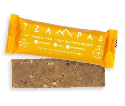 Der TZAMPAS Cacao Nibs Riegel vereinigt den mild-nussigen Geschmack gerösteter Bio-Gerste mit dem zartherben Aroma von Cacao Nibs. Langkettige Kohlenhydrate versorgen deinen Körper nachhaltig mit Energie.