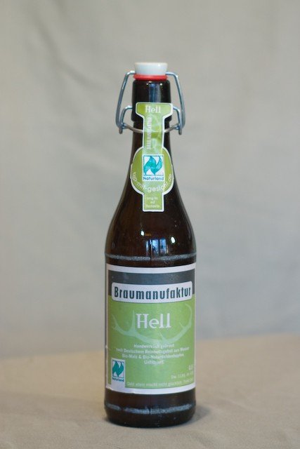 Bei dem Bio-Hell handelt es sich um ein goldgelbes, unfiltriertes Vollbier mit feinherber, Bitternote.